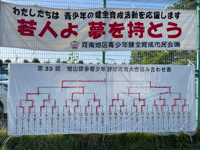 県内各地より集まった32チームによる旭山旗争奪少年野球河南大会をメイン会場のかなん球場外3面にて開催しました