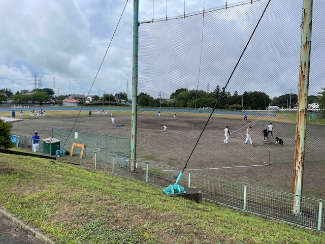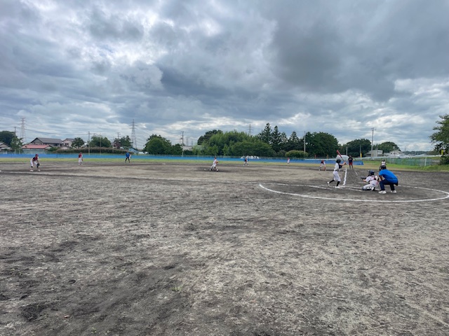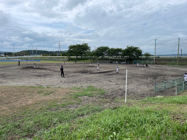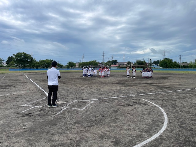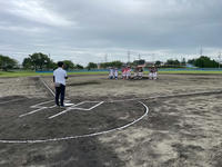 朝方まで雨が降りましたが、全チームにグラウンド整備を協力していただき
